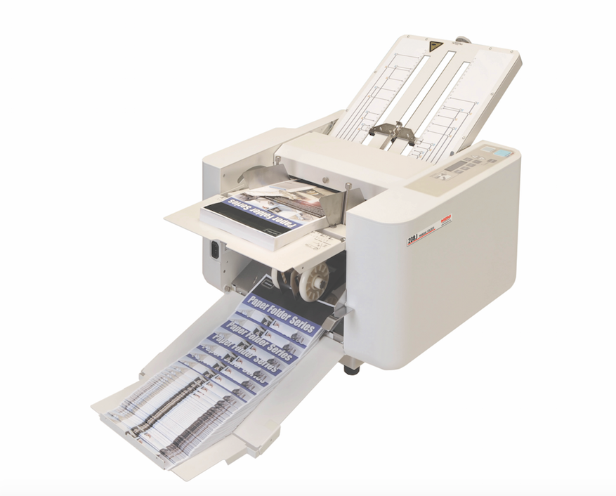 The 208J Friction Feed Paper Folder is a versatile, manual paper folding machine designed for easy setup and efficient operation. Featuring a 3-roller system, it supports both standard and custom folds, making it ideal for various paper folding tasks. The intuitive control panel includes a 4-digit counter, test button, and automatic conveyor for smooth paper ejection, ensuring reliable performance with every use. Perfect for small to medium-sized businesses, this 208J paper folder offers fast, precise folding with minimal effort, making it the ideal solution for offices and print shops needing a dependable, easy-to-use paper folding machine.