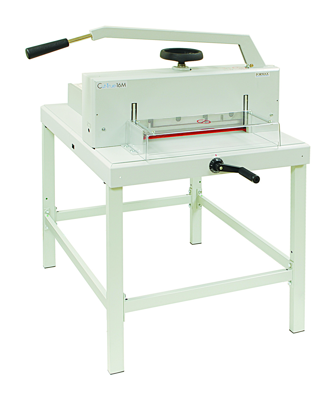 In addition to accuracy, the Cut-True 16M ranks high in safety features including front and rear transparent covers, blade lock, external blade depth adjustment, easy blade change access from the front of the cutter, and a wooden paper push for safe alignment. It also includes a rugged metal stand for a comfortable working height, and feet for tabletop use.