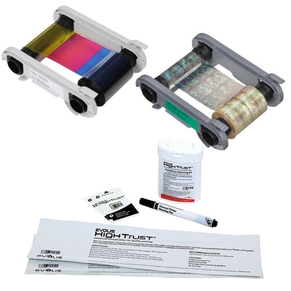 • Evolis ACL002 Advanced Cleaning Kit – 2 ‘T’ cards, 2 adhesive cards, 1 pen, wipes (dispenser)