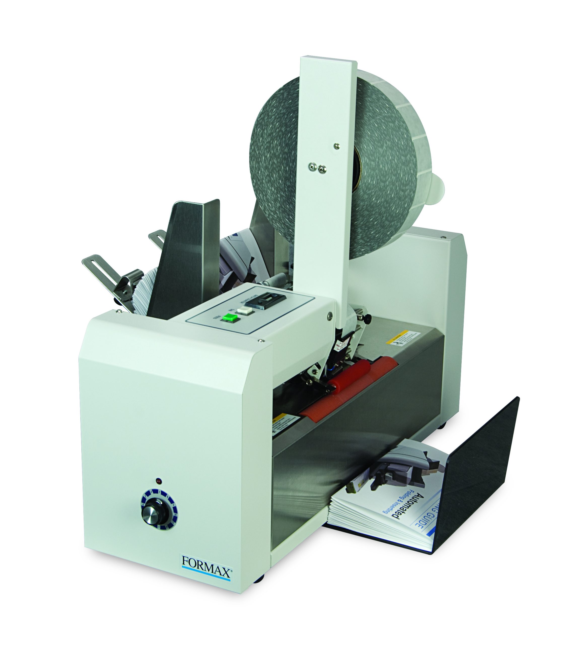 The Formax FD 262 Single-Head Tabber makes quick work of applying tabs to folded mailpieces, and is designed to meet all USPS requirements for mailing and automation discounts. Using “crash tab” technology, the open edge of a mailpiece contacts an adhesive tab and travels through a set of rollers where the tab is tightly folded and sealed, creating a mail-ready piece.