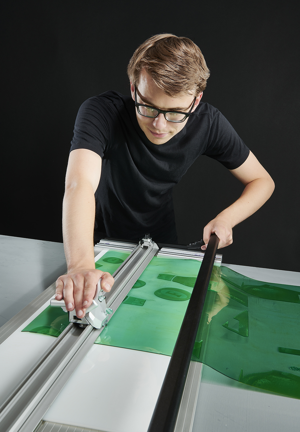 With the Flexo Plate Cutter, you can accurately pre-cut flexo on the flat.