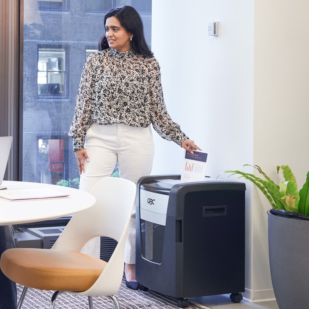Keep personal and sensitive information safe. The commercial grade GBC Momentum Paper Shredder has an impressive run time and high-tech anti-jam features, making it the perfect choice for the modern office.