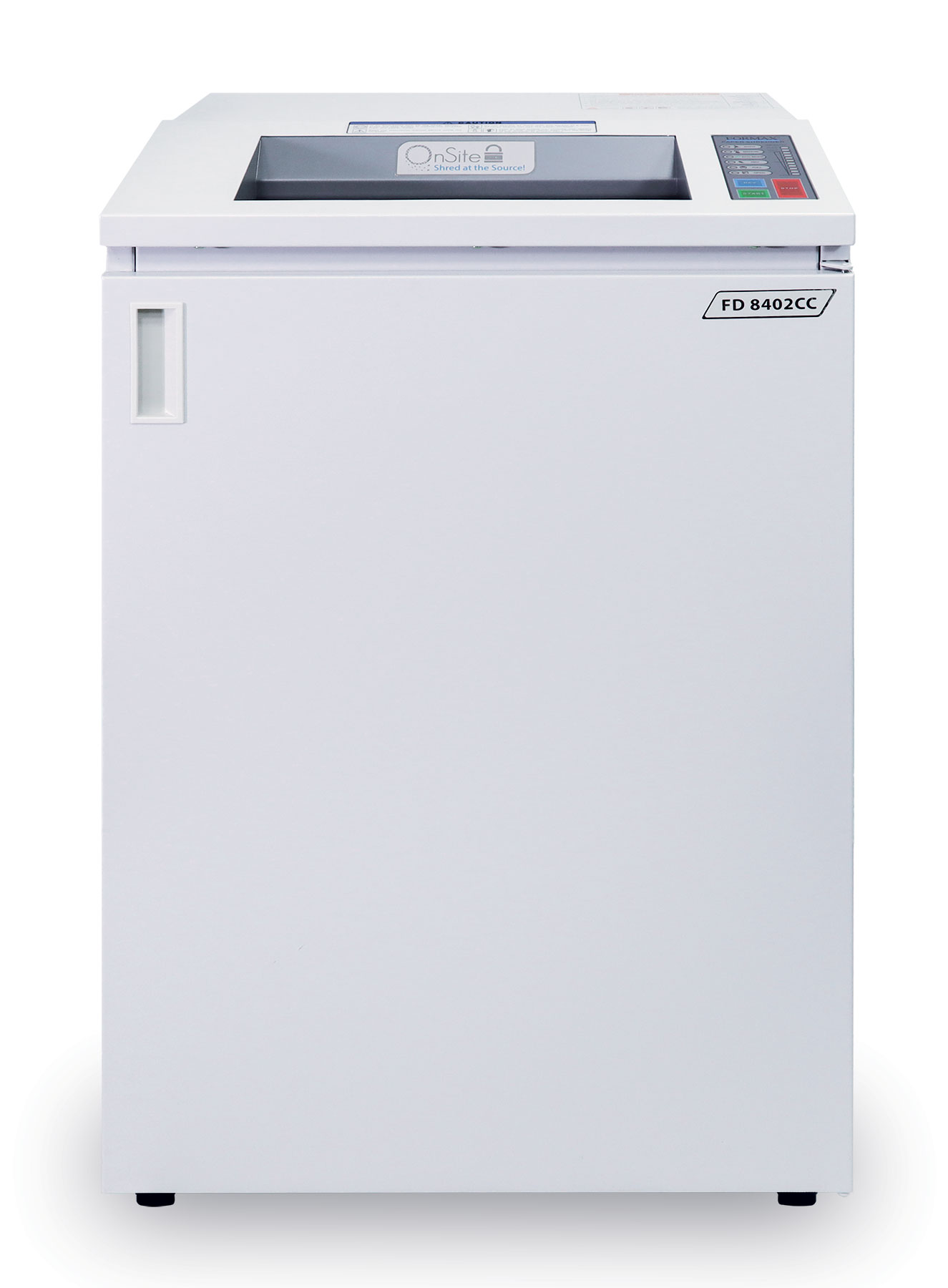 The FD 8402CC Cross-Cut model can shred up to 26 sheets at once, up to 33 feet per minute, with a shred size of 5/32″ x 1 1/5″.