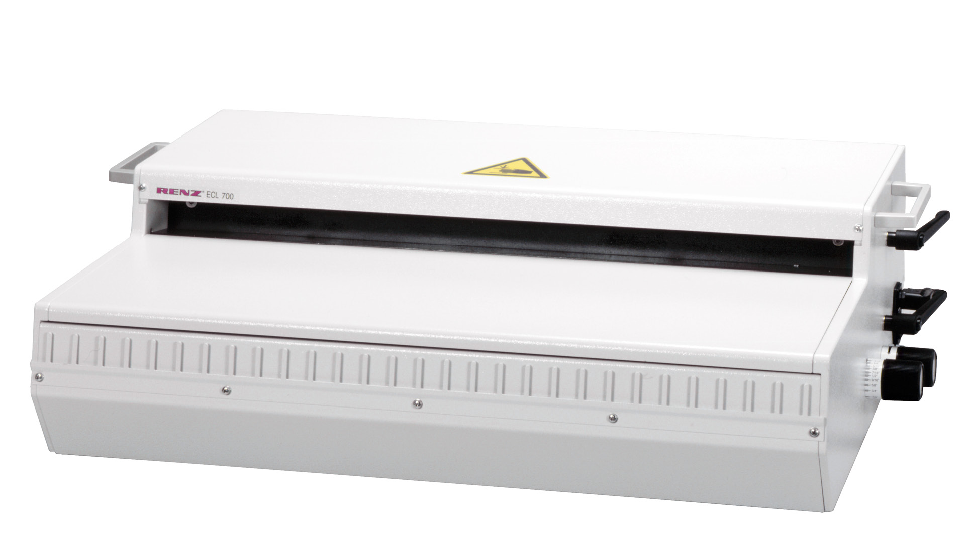 The electric RENZ ECL 700 closes wire combs precisely and evenly – ideal for documents up to 700 mm in width. It is specifically designed for binding wire comb bound products – ensuring perfectly round-closed results. Ideal for finishing blocks, brochures, training materials, notebooks or calendars. With its robust construction and compact design, the ECL 700 is the ideal solution for medium to high-volume production in copy shops, digital print environments and industrial binding lines. Wire size can be adjusted in seconds via the integrated dial. The entire closing process is operated comfortably via foot pedal, and a built-in safety system protects the operator. An integrated wire hanging device and precise parallel closing adjustment guarantee clean, professional results with minimal effort.