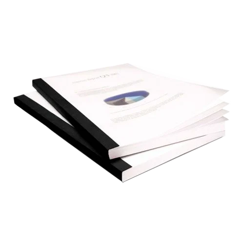 Thermal Covers come in a variety of styles. They all come with a strip of glue on the spine for tamper proof binding and pre-scored hinges for easy opening and closing. Spine sizes range from 1/16″ (2-15 sheets) up to 2″ (430-500 sheets). The typical book size will fit a standard letter size paper, but they can be made to fit a multitude of paper sizes. These covers are compatible with all Thermal Binding Machines.
